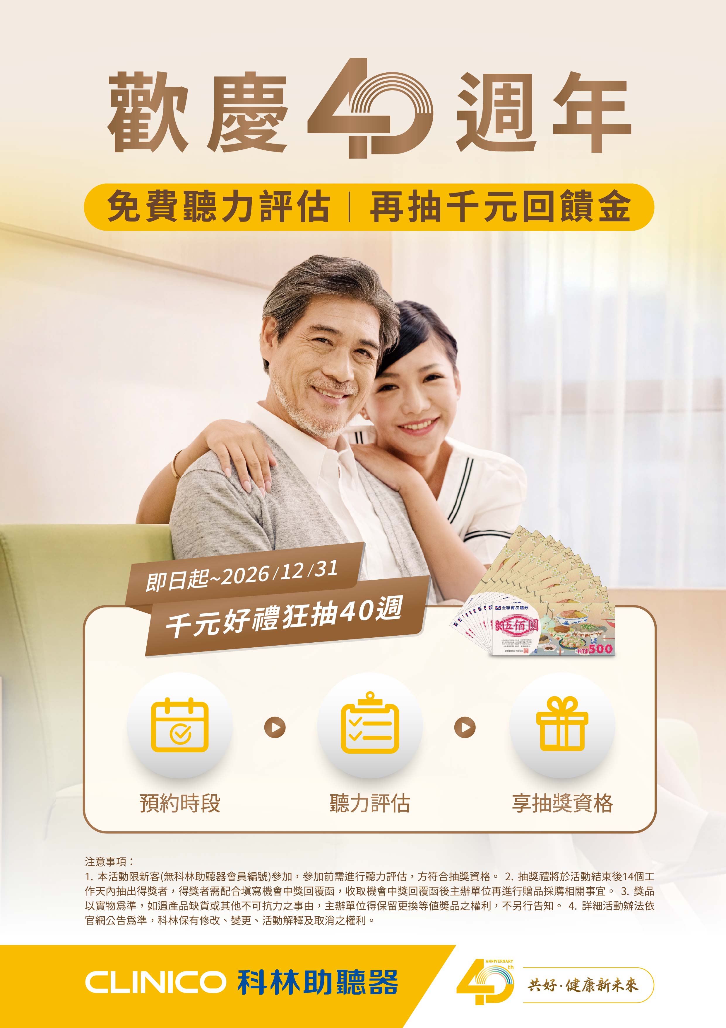 活動期間完成門市免費聽力評估,即可參加抽獎: